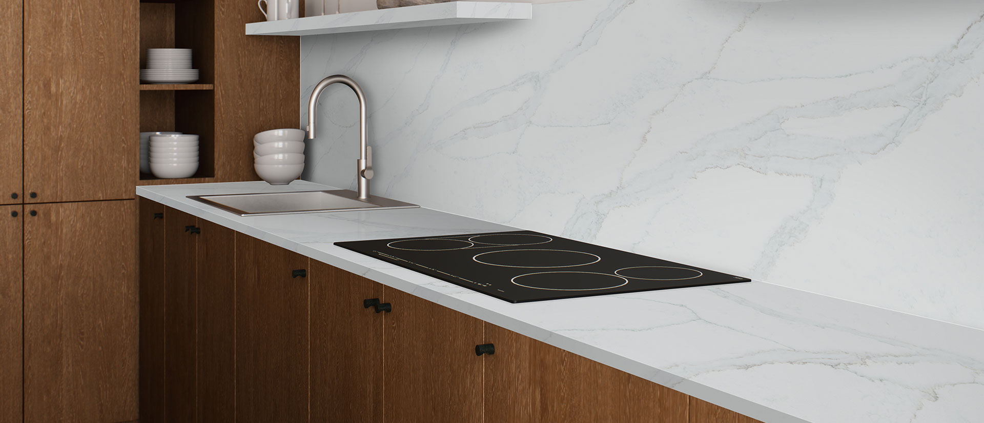 Calacatta Viso showcases a soft white base with delicate, airy veining that gently flows across the surface for a calm, refined look. Its subtle movement adds visual interest while maintaining a light, clean aesthetic, making it ideal for countertops, backsplashes, and feature walls. Timeless and versatile, it pairs beautifully with both contemporary and classic designs.